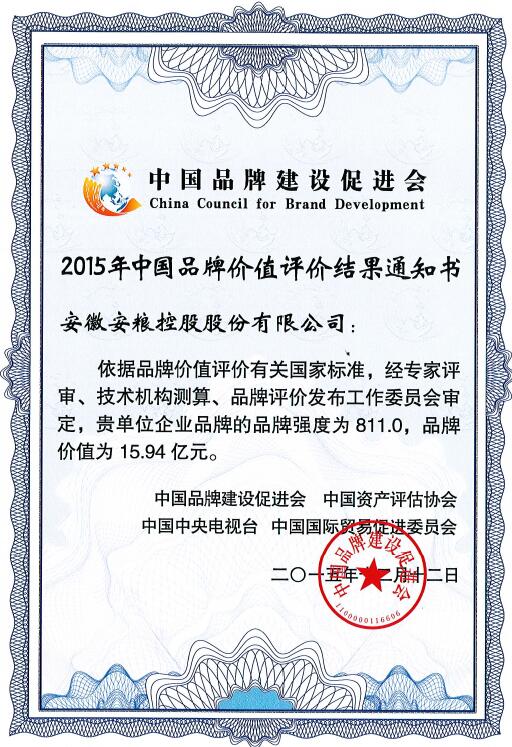 2015年中国品牌价值评价结果
